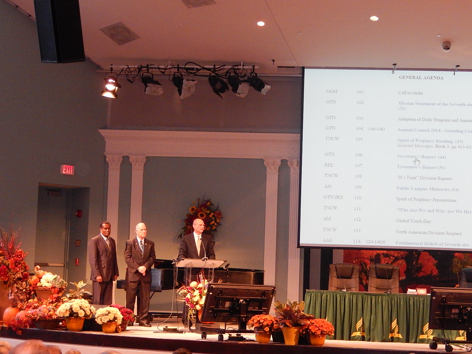 Zazneli správy z oddelenia Amicus, ktoré pripravilo novú víziu, ako pracovať so študentmi na vysokých školách. Predseda GK sa rozlúčil s vedúcim kaplanskej služby pri GK Garym Counselom, ktorý od januára budúceho roku odchádza do dôchodku. Tajomník GK Ng predniesol svoju štatisatickú správu a konštatoval, že členská základňa prekročila číslo 18,1 milióna. Na druhej strane by sme si nemali pchať hlavu do piesku (demonštroval to aj obrázkom 🙂 pred realitou, t.j. percentom tých, ktorí cirkev opúšťajú (vyše 35 percent). Zaujímavá bola aj prezentácia EGW Estate s informáciou, že na budúci rok, keĎ si bude cirkev pripomínať 100. výročie úmrtia EGW, vyjde nová kniha o jej živote a diele.